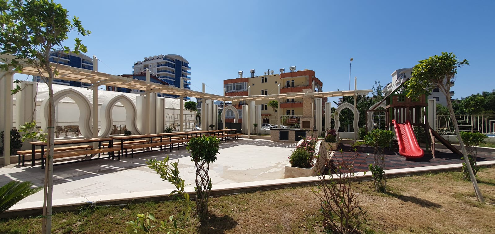 Yekta Sunrise Residence створений як повноцінне житлове середовище, а не просто будинок. Територія зелена та доглянута, з доріжками серед дерев і квітників. Кожна зона має своє призначення: відпочинок, спорт або сімейний час. Ландшафтний сад додає кольору впродовж року та зберігає свіжість навіть у спекотні дні.
