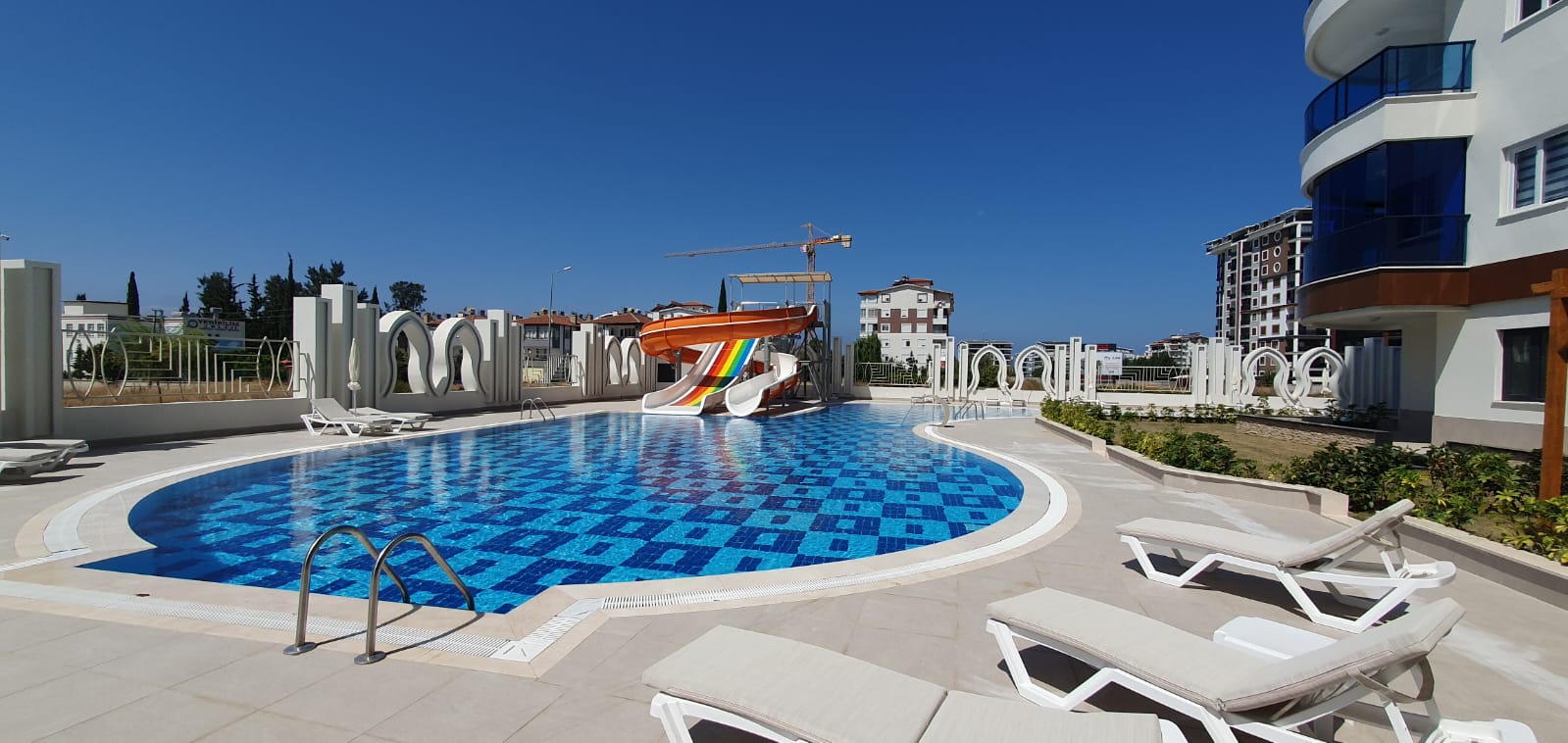 Yazar 10 Residence: сучасні 2-кімнатні квартири 50 м² з басейном, тренажерною залою та садом, лише 1 км до моря і 5 км до аеропорту.